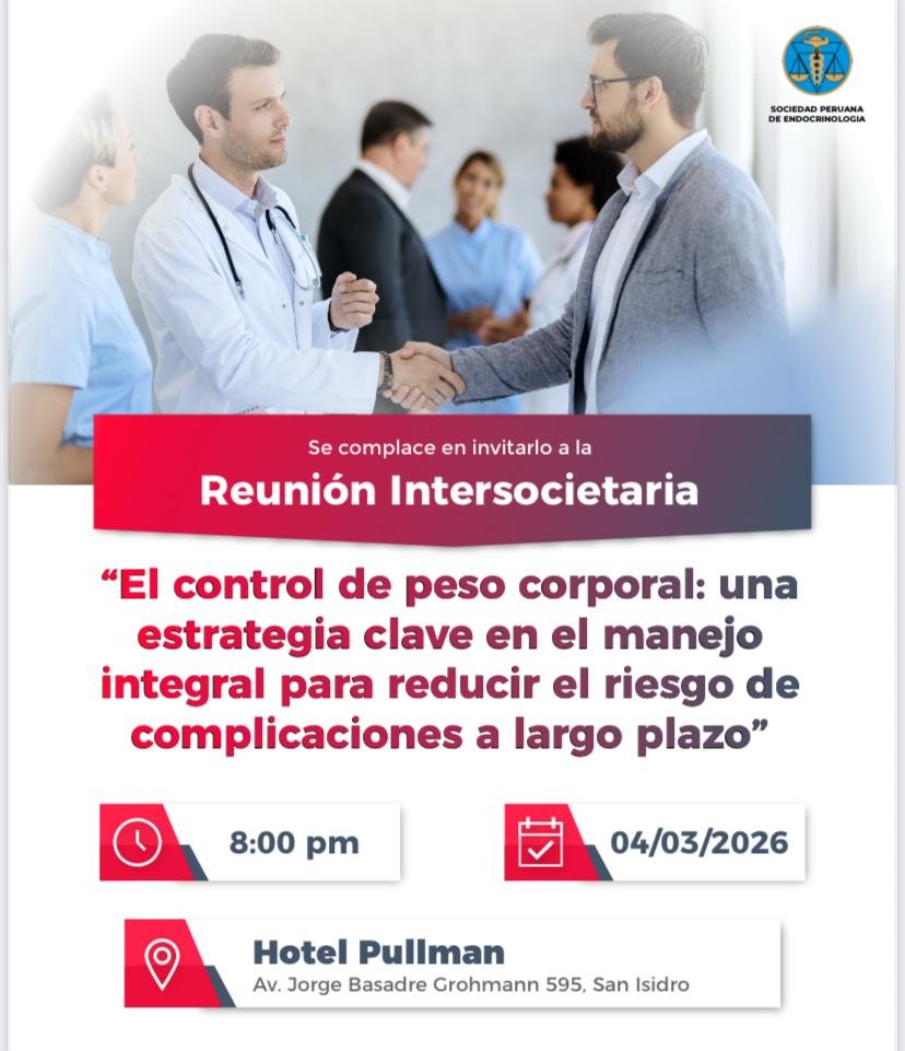 La Sociedad Peruana de Medicina Interna participó en la reunión Intersocietaria: «El control de peso corporal: una estrategia clave en el manejo integral para reducir el riesgo de complicaciones a largo plazo», para lograr un correcto manejo interdisciplinario de la Obesidad. Participaron médicos especialistas en Medicina Interna, Endocrinología, Gastroenterología, Cardiología y Nefrología.